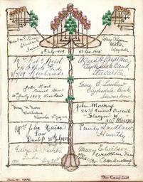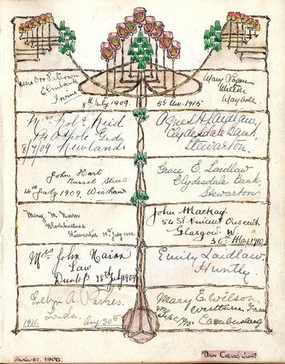 Keywords: Bonshaw, Charles Rennie Mackintosh style.jpg en Charles Rennie Mackintosh style page of Bonshaw Farm visitor book North Ayrshire Scotland Robin Wilson family archive Dan Craig 1909 - 1915 Bonshaw Ayrshire