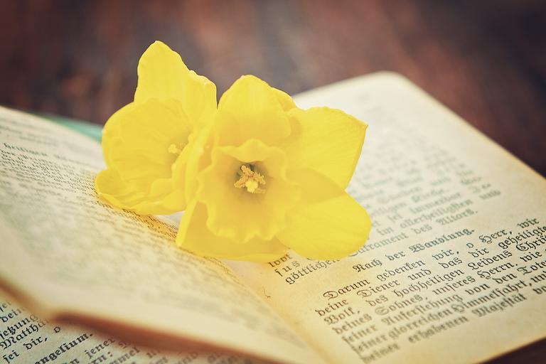 Keywords: book prayer book old religion flower narcissus close