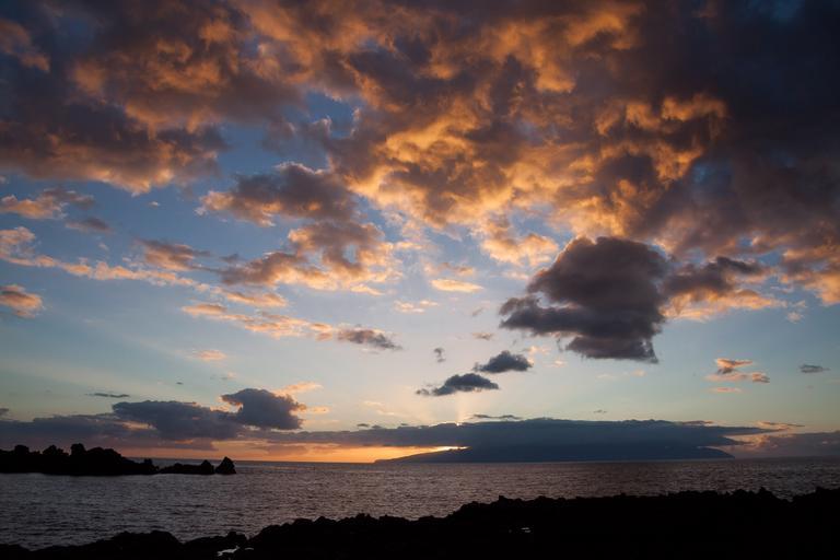 Keywords: booked sea abendstimmung sun clouds island mainland sky sunset sunburst mood rays yellow orange rock