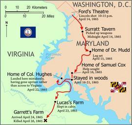 Keywords: Booth escape route.svg en John Wilkes Booth's escape route tr John Wilkes Booth'un kaçış rotası Image Booth escape route png Image Flag of Virginia svg Image Flag of Maryland svg Derivative work for Wikipedia by en User JGHowes author of SVG Kuara 2007-10-14 first version ; 2008-12-11 very last version Image Booth escape route png PD-USGov-Interior-NPS Maps of the history of the United States Assassination of Abraham Lincoln John Wilkes Booth User JGHowes |