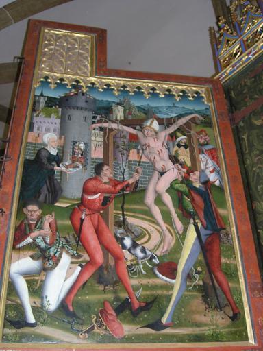 Keywords: Bopfingen Herlin-Altar 01.jpg Stadtkirche St Blasius in Bopfingen einer Stadt im Ostalbkreis Baden-Württemberg Flügelaltar von Friedrich Herlin Tafelbilder von 1472 Außenseite rechte Tafel Darstellung Martyrium des Hl Blasius 2014-07-11 10 44 40 own Ana al'ain cc-zero Uploaded with UploadWizard Herlin-Altar Bopfingen Saint Blaise |