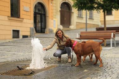 Keywords: bordeaux de dogue street mastiffs french two pet dog nature big collar puppy pavement outdoor europe outside city guard huge paving the alley brno czech republic animal my friend the guardian of the czech fountain water the freshness of the girl woman