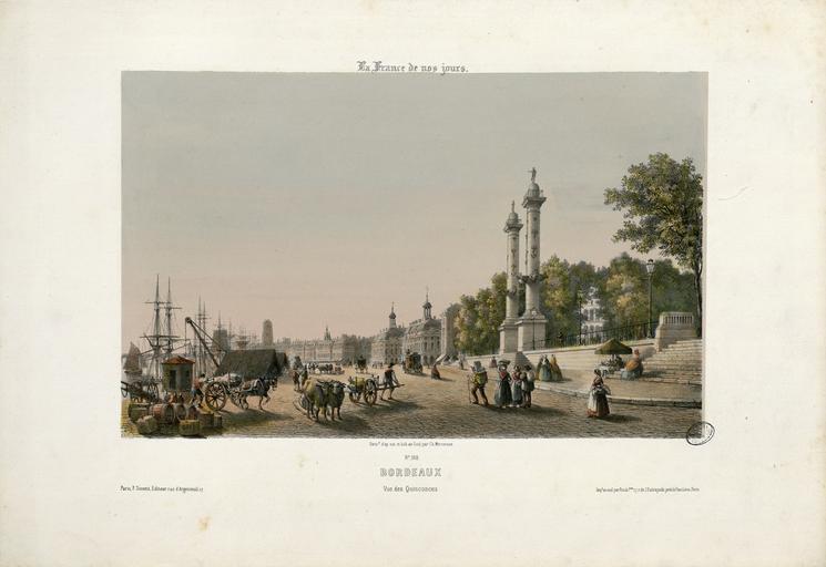 Keywords: Bordeaux, Vue des Quinconces - Fonds Ancely - B315556101 A MERCEREAU 7 051.jpg Impression en 3 coul par Frick frères à Paris Fait partie d'un ensemble de recueils de lithographies de Mercereau composés de lithographies provenant de La France de nos jours vaste suite publiée par livraisons de 1853 à 1876 et comprenant 475 planches en deux tirages l'un à deux teintes noir et bistre l'autre en couleurs Les libraires ont réuni ces planches en albums de composition variable quant au nombre de planches et aux dessinateurs Asselineau Mercereau Maurice Deroy etc Un titre Les Pyrénées par Ch Mercereau; Bagnères-de-Luchon par Ch Mercereau était frappé sur le plat supérieur de la reliure de l'album ainsi que le nom du Libraire pour lequel il était réalisé La plupart des recueils de ces planches pyrénéennes portent le nom de Sajous libraire à Bagnères-de-Luchon Pl 1 à 18 numérotées de 370 à 386 Pl 374 pl 5 et 6 en double -- Pl 19 20 et 21 numérotées respectivement 407 415 et 418 Ces trois pl ont été dessinées et lithographiées par Asselineau -- Pl 22 23 et 24 numérotées 438 439 et 440 -- Pl 22 lith par Aubrun -- Pl 25 numérotée 441 -- Pl 26 à 40 numérotées de 327 à 341 -- Pl 41 à 46 numérotées de 363 à 368 -- Pl 47 numérotée 369 -- Pl 48 num 292 -- Pl 49 et 50 num 264 et 265 -- Pl 51 et 52 num 268 et 269 -- Pl 53 à 55 num de 293 à 295 -- Pl 56 num 300 -- Pl 57 à 59 num de 307 à 309 -- Pl 60 à 70 num de 316 à 326 -- Pl 71 num 63 dessin et lith d'Asselineau imprimerie Destouches -- Pl 72 et 73 num 87 et 88 dessin et lith d'Asselineau imprimerie Destouches -- Pl 74 num 124 signée Lebreton éditée chez Lalonde à Paris et imprimée chez Becquet frères à Paris -- Pl 75 num 161 dessin et litho d'Asselineau imprimerie Destouches --Pl 76 à 78 num de 207 à 209 -- Pl 79 à 81 num de 211 à 213 -- Pl 82 num 220 dessin et lith de Maurice imprimerie Destouches -- Pl 83 à 86 num de 226 à 229 -- Pl 87 et 88 num 234 et 235 -- Pl 89 à 91 num de 273 à 275 -- Pl 92 et 93 num 290 et 291 Pièces jointes 6 pl sépia dont certaines sont des doubles du recueil de Mercereau Les cinq premières planches sont numérotées respectivement 318 321 324 331 386 La dernière planche n'est pas extraite de La France de nos jours mais de L'Espagne pittoresque et monumentale Ces six planches sont signées Mercereau éditées chez Sinnet et imprimées chez Frick frères Ancely René 1876 - 1966 Possesseur fre public domain domaine public B315556101_A_MERCEREAU_7_051 jpg image/jpeg 1 f de pl lithogr ; 30 cm oblong Frick frères Imprimeur Sinnet F Éditeur http //numerique bibliotheque toulouse fr/collect/general/index/assoc//ark /74899/B315556101_A_MERCEREAU_7_051 dir/B315556101_A_MERCEREAU_7_051 jpg Bibliothèque municipale de Toulouse A-MERCEREAU 7-51 Creator Charles Mercereau http //catalogues toulouse fr/web2/tramp2 exe/do_keyword_search/log_in setting_key BMT1 servers 1home query p001675 St Jean-de-Luz intérieur de l'Eglise St Jean-de-Luz le Château de l'Infante Biarritz Vue générale prise du Phare Château de Mauvesin près Bagnères-de-Bigorre Hautes Pyrénées Bagnères de Bigorre Hautes Pyrénées - Intérieur de l'Eglise des Carmes en couleurs Bagnères de Bigorre Hautes Pyrénées - Intérieur de l'Eglise des Carmes Bagnères-de-Bigorre - Eglise et couvent des Carmes Bagnères-de-Bigorre Hautes-Pyrénées - Tour des Jacobins Cascade et Pont de Magenta Vallée de l'Esponne Hautes Pyrénées Cascade de Trémes-Aïgues Vallée de Grip Hautes Pyrénées St Sauveur Hautes Pyrénées - Le Pont Napoléon Bayonne - Eglise St André Arreau et la Vallée d'Aure Hautes Pyrénées - Vue prise au dessus de la route du Col d'Aspin Auch - Vue prise sur les bords du Gers Auch - Vue de la Cathédrale Auch - Intérieur de la Cathédrale Bagnères-de-Bigorre - Vue Générale prise de la Fontaine ferrugineuse Eaux-Bonnes Basses-Pyrénées - L'établissement Thermal et la Chapelle Nantes - Vue de l'Eglise Ste Croix Le Croisic - Plage des Baigneurs et Etablissement de Bains Le Folgoët - Vue de l'Eglise Brèche de Roland prise de Gèdres Hautes Pyrénées Eglise des Templiers à Luz Chapelle du couvent de Pouëlahun i e Pouey Lahun - Vallée d'Azun Hautes Pyrénées Le Pont de Scia - Route de Luz à Gavarnie Hautes-Pyrénées Vue de l'établissement de la Raillière près Cauterets Hautes-Pyrénées Vue générale de Cauterets prise du Mamelon Vert Hautes-Pyrénées Vue du Fort de Lourdes Hautes-Pyrénées Vue d'Argelès-de-Bigorre Hautes-Pyrénées Vue de St Sauveur Hautes-Pyrénées Le Pas de l'Echelle Route de Gavarnie Hautes-Pyrénées Fond de la Vallée d'Argelès prise de la terrasse de St Savin Hautes-Pyrénées Place Grammont à Pau Basses-Pyrénées Vue générale des Eaux-Bonnes Basses-Pyrénées Barèges et la Vallée du Bastan Hautes-Pyrénées Chute supérieure du Pont d'Espagne Hautes-Pyrénées La grotte miraculeuse à Lourdes Hautes-Pyrénées Eglise de Bétharram et Pont de Lestelle Basses Pyrénées Cascade du Cerizet Près Cauterets Hautes-Pyrénées Pic du Midi d'Ossau 2885m Basses Pyrénées - Vue prise du 3e plateau de Bious-Artigues Toulouse - Cloître du Musée et Clocher des Augustins Pau - Vue prise de la terrasse du Château Pau - Vue du Château prise du Parc Toulouse - Cloître du Musée Galerie du Moyen-Age Toulouse - La maison de pierre fragment de la façade Toulouse - Intérieur de St Sernin St Jean-de-Luz Fort du Socoa Toulouse - Vue du Capitole Bordeaux Vue de la Porte du Caillau i e Cailhau Bordeaux Porte de la grosse Cloche Bordeaux - Vue de la Tour et de l'Eglise de St Michel Toulouse - Vue du Pont de pierre prise du Quai de Brienne Toulouse - Abside de l'Eglise de St Sernin de l'an 1097 Toulouse - Choeur de la Cathédrale St Etienne Rouen - Hôtel de Bourgtheroulde Biarritz - Vue des Bains Napoléon et du Casino Biarritz - Vue des Bains du Port Vieux Biarritz - Vue de l'Entrée de la Ville à l'arrivée de Bayonne Le Lac Bleu Hautes-Pyr