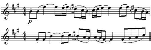 Keywords: BorPolDances17b.png A crop of Image BorPolDancesThemes png showing only theme 17 b The Stranger in Paradise melody Musical notation from computer input and screen capture of themes from the Polovetsian Dances from the opera Prince Igor by Alexander Borodin 1833-1886 These musical selections are in the public domain PD-old Borodin Prince Igor Polovetsian Dances |