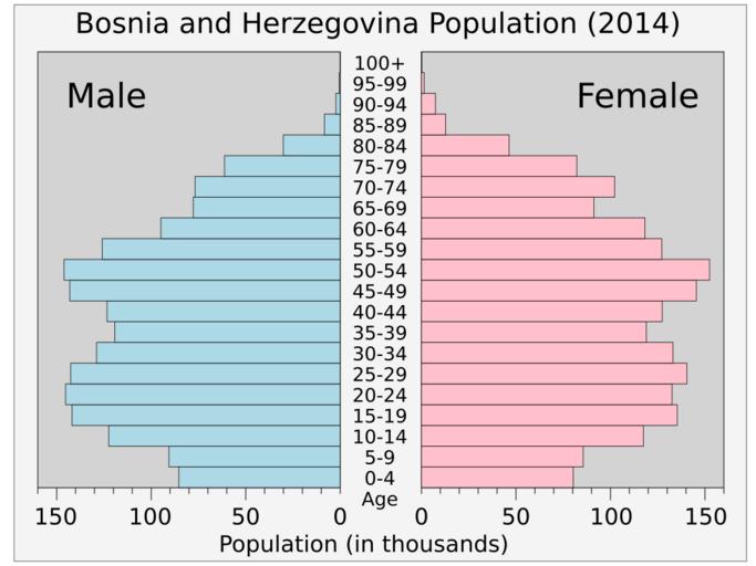 | Keywords: Bosnia and Herzegovinapop.svg translate yes en Current population pyramid of Bosnia and Herzegovina 2014 from UN estimates World Population Prospects http //esa un org/unpd/wpp/Excel-Data/population htm The 2012 Revision 2014-08-06 own Delphi234 cc-zero Uploaded with UploadWizard Population pyramids of Bosnia and Herzegovina |