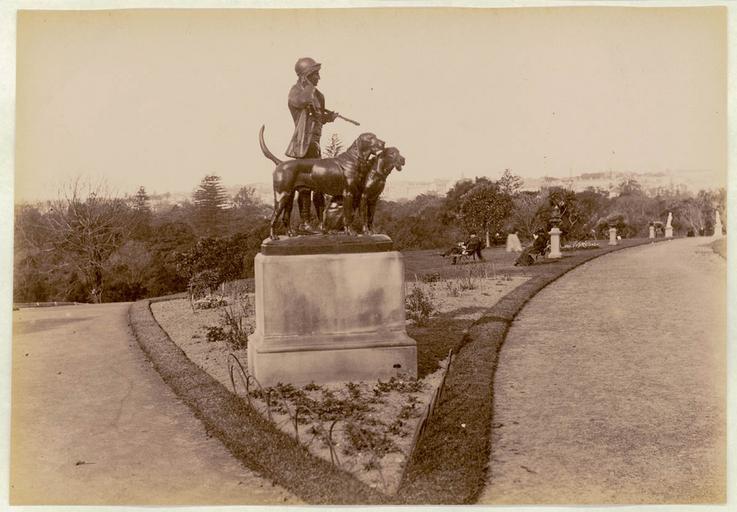 View Original:Botanical_Gardens,_Sydney,_[showing_Hunstman_and_Dogs_sculpture]_c._1900-1910.jpg (1400x972)