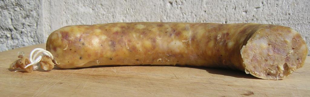 Keywords: Botifarra d'ou.jpg en Egg botifarra made with porc meat and egg ca Una botifarra d'ou típica de dijous llarder Carnaval a Barcelona Actualment estan fetes de carn d'espatlla de porc ous sal i pebre negre; però inicialment la idea era crear una botifarra que es pogués menjar seguint els preceptes de quaresma es Una butifarra de huevo La butifarra de huevo es un tipo de butifarra ya cocida y sin sangre parecida a la blanca pero que contiene huevo además de carne magra de cerdo chicharrones a veces sal y pimienta El color amarillento viene dado por el huevo Se come cruda cortada en rodajitas en el aperitivo con pan con tomate en bocadillo etc Es muy típica del día de la tortilla jueves de Carnaval día en que tradicionalmente en Cataluña se comen chicharrones llardons cocas dulces de éstos butifarras butifarra de huevo en especial y todo tipo de tortillas incluyendo la de butifarra de huevo En principio sólo se encuentra fácilmente en los comercios en la época cercana a carnaval de enero a marzo aproximadamente own Slastic 2010 Boudin Botifarres Egg-based food Carnival food Carnivals of Catalonia |