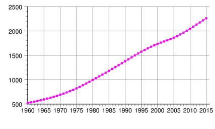 | Keywords: Botswana-demography.svg en Botswana population 1960-2015 From UN estimates World Population Prospects http //esa un org/unpd/wpp/Excel-Data/population htm The 2015 Revision<br/>Y-axis Number of inhabitants in thousands 2009-10-08 own Patricia fidi Demmo other versions Generated with Wikimedia SVG Chart SVG Chart/box Gnuplot Version 4 2 patchlevel 5 <pre> set term svg size 800 500 dynamic font sans-serif set autoscale xfix set grid set style data linespoints set pointsize 0 6 unset key plot population txt linetype rgb FF00FF pt 5 </pre> Data file population txt <pre> 1950 413 1951 425 1952 437 1953 448 1954 459 1955 470 1956 480 1957 490 1958 501 1959 512 1960 524 1961 537 1962 550 1963 564 1964 580 1965 596 1966 613 1967 631 1968 651 1969 671 1970 693 1971 716 1972 740 1973 765 1974 793 1975 822 1976 854 1977 888 1978 923 1979 960 1980 996 1981 1033 1982 1070 1983 1107 1984 1145 1985 1183 1986 1222 1987 1261 1988 1300 1989 1340 1990 1380 1991 1420 1992 1460 1993 1500 1994 1539 1995 1576 1996 1612 1997 1646 1998 1678 1999 1708 2000 1737 2001 1763 2002 1787 2003 1810 2004 1836 2005 1864 2006 1896 2007 1930 2008 1968 2009 2007 2010 2048 2011 2090 2012 2133 2013 2177 2014 2220 2015 2262 </pre> Demographics of Botswana Temporal population graphs Botswana |