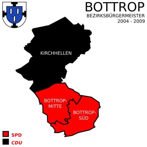 Keywords: Bottrop-bezirksbuergermeister-2004.svg en District mayors of the districts Kirchhellen Bottrop-Mitte and Bottrop-Süd of the City of Bottrop in Northrhine-Westfalia de Bezirksbürgermeister der drei Bottroper Bezirke Kirchhellen Bottrop-Mitte und Bottrop-Süd in Nordrhein-Westfalen own Vinom 2009-01-09 Maps of Bottrop |