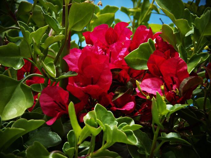 Keywords: bougainvillea garden garden fence colorful green and red beauty warmth red vine