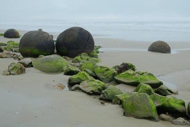 Keywords: boulders moeraki koekohe beach sea nature rocks new zealand landmark ocean coast coastline coastal sphere geology scenic landscape seascape seashore sea lettuce