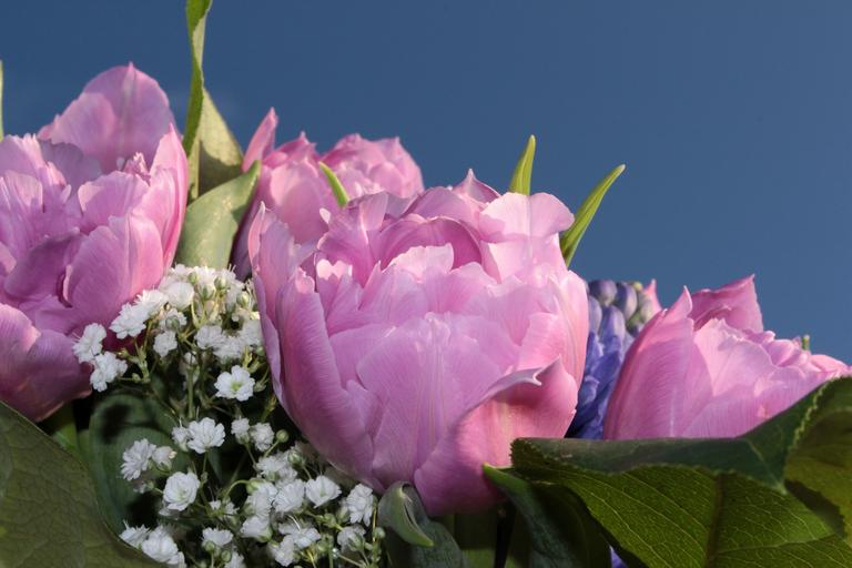 Keywords: bouquet double tulips filled tulips pink gypsophila fragrance spring bouquet cut flowers