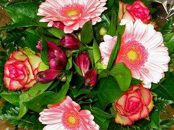 Keywords: bouquet of flowers florist bouquet of roses bouquet love flowers roses romance greeting card birthday bouquet birthday flowers floral greeting greeting orange floristry gerbera pink flowers excuse me background congratulate birthday bound