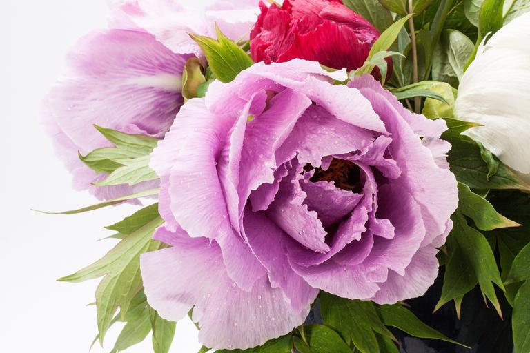 Keywords: bouquet peony flower nature flora spring blossom bloom ornamental plant pink purple red white green double flower lush