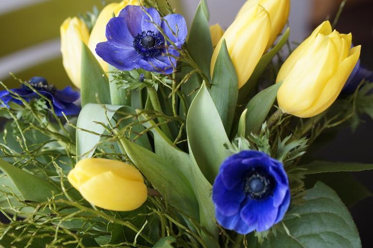 Keywords: bouquet tulip spring flowers schnittblume flora blossom bloom spring bouquet spring flower tulip bouquet plant birthday bouquet yellow strauss colorful anemones tulips