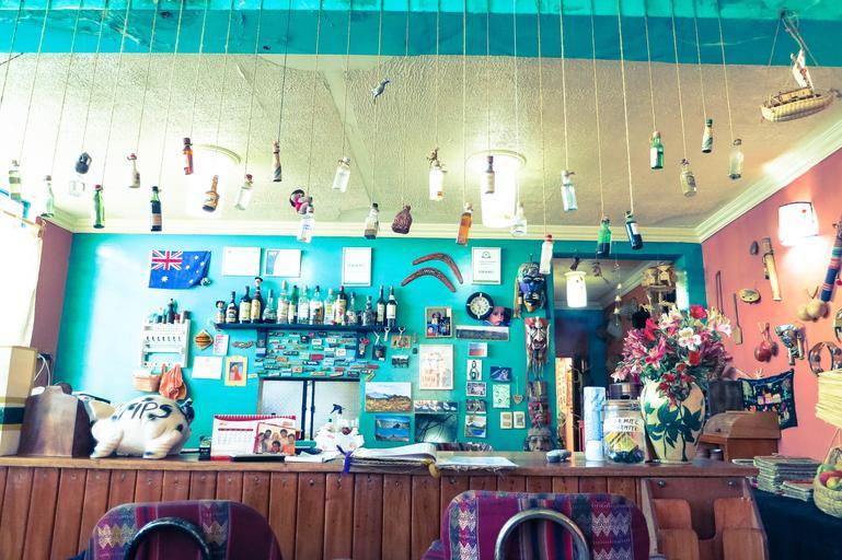 Keywords: boutique restaurant bottles chairs counter shelves strings tips jars