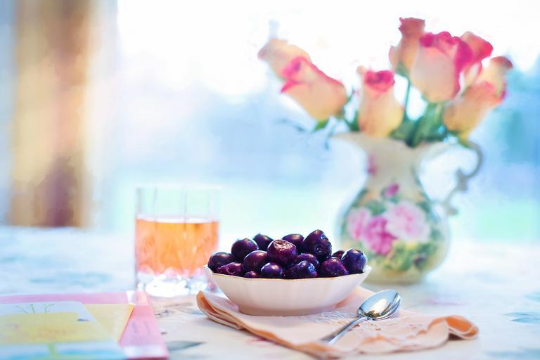 Keywords: bowl of cherries cherries breakfast colorful summer still life