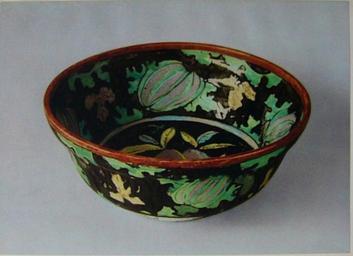 | Keywords: Bowl Mellon Mokubei.JPG 模様鉢 径24cm 高10 8cm 米 1767-1833 江戸時代 Enamelled ceramic bowl with Design of Mellons in Black Ground 24cm diameter 10 8cm height by MOKUBEI ACE1767-1833 Kyoto Japan 大和文華 第9号 昭和28年3 YAMATO BUNNKA No 9 1953 March editor YAMATO-BUNKAKAN Osaka Japan 17世 後 late 17th century Publised in 1937 米 AOKI MOKUBEI ACE1767-1833 Photo YAMATO-BUNKAKAN ACE1953 PD-Japan-oldphoto Porcelain of Japan Ceramics of the Edo period Aoki Mokubei | ||||