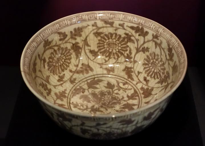 Keywords: Bowl with floral design in underglaze red, China, Hongwu Period, Ming Dynasty, 1368-1398 - Hong Kong Museum of Art - DSC00703.JPG en Bowl with floral design in underglaze red China Hongwu Period Ming Dynasty 1368-1398 - Hong Kong Museum of Art Hong Kong This artwork is in the public domain because the artist died more than 70 years ago Note although the museum did not permit photography of most items in the museum it explicitly permitted photography of this particular object both in signage and when I asked a guard Thus there are no restrictions on use of this image 2014-07-26 23 37 02 own Daderot PD-old-70 cc-zero Uploaded with UploadWizard Ceramics in Hong Kong Museum of Art Ceramics of the Ming Dynasty Ceramic bowls |