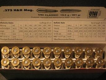 Keywords: Box of .375H&H.JPG Box of 375H H Cartridges with UNI-Classic 300-gr Bullets own Lord Mountbatten 2011-01-11 375 H H Magnum Cartridge boxes