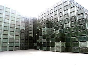 Keywords: box plastic stack industry build wall green container high huge quantitative mass buy stock