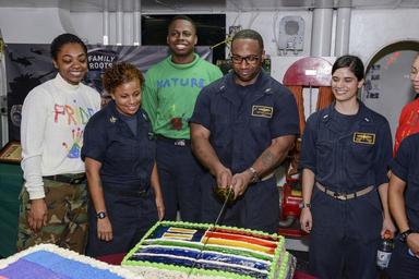 | Keywords: BOXARG13MEU16 160621-N-UB927-010.jpg en 160621-N-UB927-095 ARABIAN GULF June 21 2016 Members of the Diversity Team cut a cake on the mess decks following the Lesbian Gay Bisexual and Transgender LGBT observance aboard the amphibious assault ship USS Boxer LHD 4 Boxer is the flagship for the Boxer Amphibious Ready Group and with the embarked 13th Marine Expeditionary Unit is deployed in support of maritime security operations and theater security cooperation efforts in the U S 5th Fleet area of operations U S Navy photo by Mass Communication Specialist 3rd Class Brett Anderson/Released <br>Unit USS Boxer LHD 4 2016-06-21 Petty Officer 3rd Class Brett Anderson https //www dvidshub net/image/2680467/boxarg13meu16 160621-N-UB927-010 2016-06-22 03 48 GULF OF ADEN PD-USGov-Military-Navy 13th Marine Expeditionary Unit USS Boxer LHD-4 Images from DoD uploaded by Fæ |