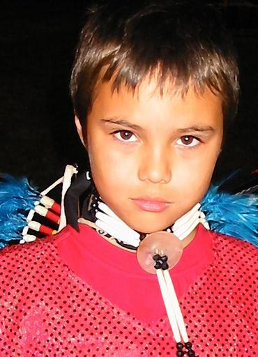 Keywords: boy child portrait head face beautiful expressions thoughtful people serious close-up native american indian tribal regalia ceremony powwow human painting young red