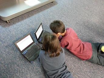 MAKE A MEME View Large Image boy girl children computer learning education laptop collaboration