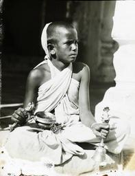 Keywords: Boy priest, Siwan, India, ca. 1906 (IMP-CSCNWW33-OS14-29).jpg en <br> Boy priest Siwan India ca 1906 Black and white lantern slide picturing a boy priest in robes holding a metal bell in one hand a metal sceptre in his other hand and resting a small bowl on his knee The boy is sitting cross-legged in what seems to be the entrance to a building The boy is probably a Hindu rather than a Buddhist priest This slide comes from a collection created by missionaries from Regions Beyond Missionary Union an interdenominational Protestant evangelical mission working in northeast India Bihar and Orissa and Nepal Photographer Unknown Filename IMP-CSCNWW33-OS14-29 tif Coverage date 1900/1910 Subject unesco Hinduism; Clergy; Boys Part of collection International Mission Photography Archive ca 1860-ca 1960 Part of subcollection Photographs from the Centre for the Study of World Christianity University of Edinburgh U K ca 1900-ca 1940s Repository name Centre for the Study of World Christianity Archival file Volume3/IMP-CSCNWW33-OS14-29 tif Geographic subject city or populated place Siwan Repository address The University of Edinburgh School of Divinity New College Mound Place Edinburgh EH1 2LX United Kingdom Geographic subject country India Format aacr2 lantern slides 8 2 x 8 2cm Geographic subject continent Asia Rights Contact the repository for details Part of series Regions Beyond Missionary Union India captioned lantern slides CSCNWW33/OS14 Repository email divinity-CSWC ed ac uk Date created 1900/1910 Publisher of the digital version University of Southern California Libraries Subject aat genre portraits Format aat lantern slides; photographs Geographic subject state Bihar Access conditions http //www ed ac uk/schools-departments/divinity/research/centres/world-christianity/collections-resources Geographic subject religious facilities File CSCNWW33/OS14/29 Subject lcsh Priests; Worship 1900/1910 date created author http //digitallibrary usc edu/cdm/ref/collection/p15799coll123/id/78245 PD-old-70-1923 Magic lantern images Images from USC Digital Library uploaded by Fæ International Mission Photography Archive ca 1860-ca 1960 Siwan district |