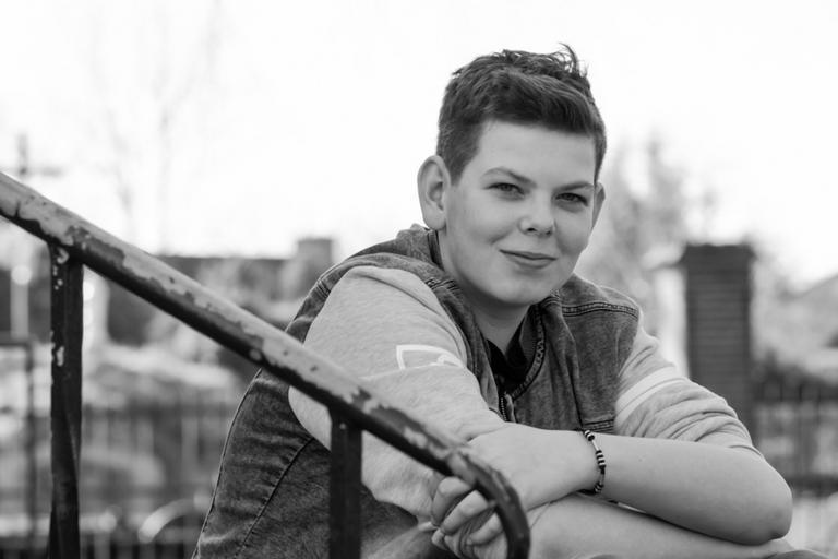Keywords: boy sitting watch man tough teen child outdoor face faces smile cool young relaxed people beautiful eyes black white vest crest short hair male model