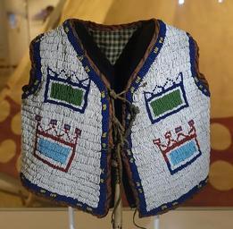 Keywords: Boy's vest, Central Plains, USA, 1850-1900, leather, cotton, glass beads - Rautenstrauch-Joest-Museum - DSC00318.jpg en Exhibit in the Rautenstrauch-Joest-Museum - Cologne Germany 2015-11-29 09 48 00 own Daderot other versions PD-old-100 cc-zero Collections of the Rautenstrauch-Joest-Museum in Cologne Native American beadwork |