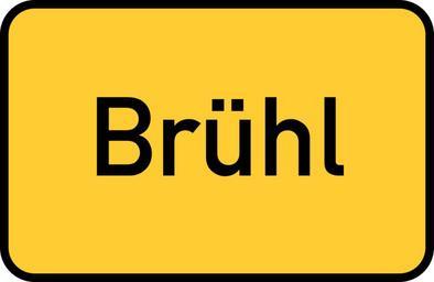 Keywords: brühl rhineland north rhine-westphalia town sign city limits sign entry sign gateway sign traffic road sign street sign directory yellow germany direction unesco world heritage site