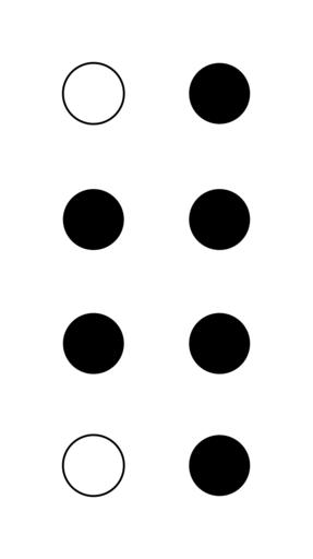 Keywords: Braille8 Dots-425368.svg 8 dot Braille letter/symbol Dots-425368 Unicode U+28BE Created by 3247 using braille8 pl Braille letters 8 dots Braille_10111110