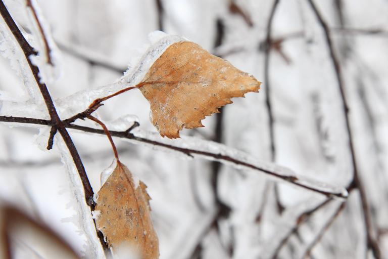 Keywords: branch brown cold birch frost frozen ice leaf leaves nature snow winter