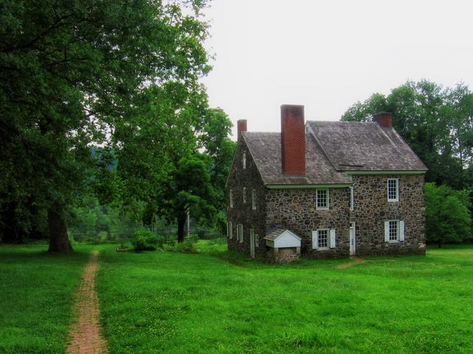 Keywords: brandywine pennsylvania house home old trees nature outside brick stone architecture grass lawn summer