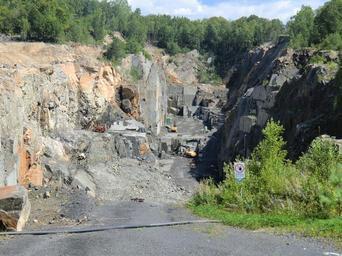 Keywords: Brannhult.jpg de Steinbruch Brännhult in der Gemeinde Älmhult Småland Südschweden Hier wird ein prä-neoproterozoischer Doleritgang abgebaut der paläoproterozoische Metagranitoide Monzogranite Quarzmonzonite Granodiorite Quarzmonzodiorite durchschlägt Die Gesteine gehören zur sogenannten Protoginzone einer kilometerbreiten Scherzone zwischen den Svekonorwegiden und dem Transskandinavischen Magmagürtel des Baltischen Schildes <ref name Wik_et_al >Nils-Gunnar Wik Dick Claeson Ulf Bergström Fredrik Hellström Cecilia Jelinek Niklas Juhojuntti Johan Jönberger Leif Kero Lena Lundqvist Sam Sukotjo Hugo Wikman 2009 Beskrivning till regional berggrundskarta över Kronobergs län Sveriges geologiska undersökning Uppsala ISBN 978-91-7158-873-9 http //resource sgu se/produkter/k/k142-beskrivning pdf PDF see fig 63 therein and text on same page </ref><ref name map >Nils-Gunnar Wik Dick Claeson Ulf Bergström Fredrik Hellström Cecilia Jelinek Niklas Juhojuntti Johan Jönberger Leif Kero Lena Lundqvist Sam Sukotjo Hugo Wikman 2009 Berggrundskarta över Kronobergs län skala 1 250 000 SGU series K 142 Sveriges geologiska undersökning Uppsala ISBN 978-91-7158-872-2 http //resource sgu se/produkter/k/k142-karta pdf PDF </ref> en Brännhult quarry in Älmhult municipality Småland southern Sweden Here a dyke of Pre-Neoproterozoic dolerite is quarried that cuts through a suite of Paleoproterozoic metagranitoid rocks monzogranite quartz monzonite granodiorite quartz monzodiorite The rocks belong to the so-called Protogine Zone a several kilometers wide shear zone between the Sveconorwegian domain and the Transscandinavian Igneous Belt of the Baltic Shield <ref name Wik_et_al /><ref name map /> sv Stenbrottet i Brännhult Älmhults kommun Småland <references /> own Gräsmark 2011-07-16 56 34 59 N 14 12 32 E region SE-G_heading NNE Cc-zero Quarries in Sweden Älmhult Municipality 2011 in Älmhult Municipality July 2011 in Sweden Geology of Småland |