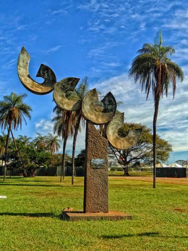 Keywords: brasilia brazil park sculpture artwork sky clouds nature outside palms palm trees hdr