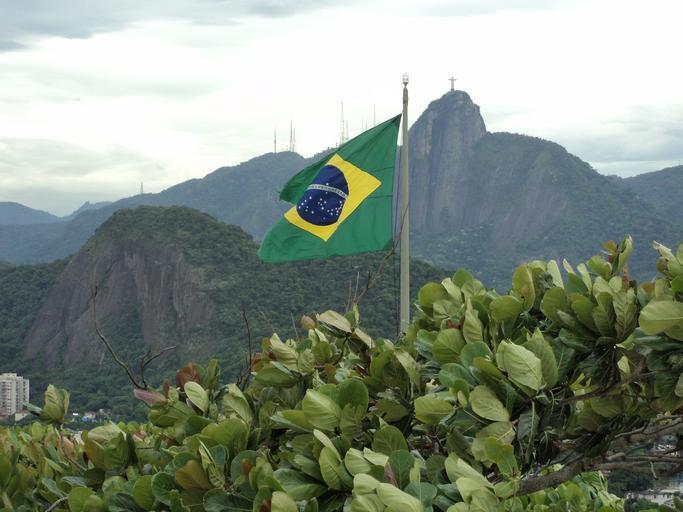 Keywords: brazil flag green flagpole rio de janeiro landscape christ the redeemer