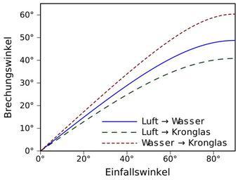 Keywords: Brechungsgesetz-Winkel.svg en The diagram shows the dependence of refraction angle of incidence angle and the refractive index ratio of the materials involved Created with Gnumeric Used refractive indices air 1 00 water 1 33; crown glass 1 53 de Das Diagramm zeigt die Abhängigkeit des Brechungswinkel vom Einfallswinkel und dem Brechzahlverhältnis der beteiligten Materialien Erstellt mit Gnumeric Verwendete Brechzahlen Luft 1 00; Wasser 1 33; Kronglas 1 53 own Cepheiden 2010-04-17 thumb Refraction diagrams |