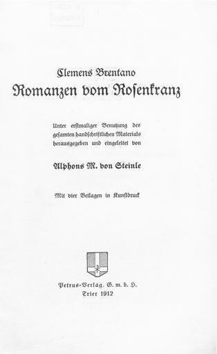 Keywords: Brentano Romanzen vom Rosenkranz A 001.jpg B_001 A_002