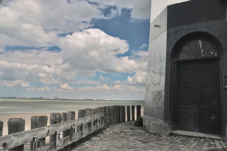 Keywords: breskens zeeuws vlaanderen province zeeland netherlands scheldt estuary sea sky lighthouse door input