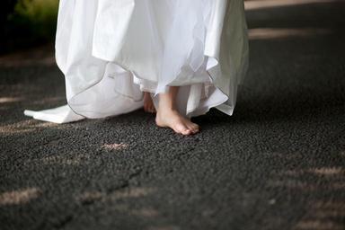 Keywords: bride road dress bridesmaid dress outdoors white dress wedding barefoot