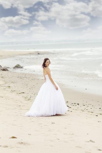 Keywords: bride wedding marriage woman dress female people white romantic attractive celebration portrait event married wife beach ocean waves sand bridal
