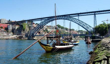Keywords: bridge boat river oporto portugal iron arc ancient