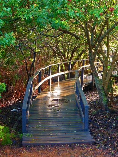 Keywords: bridge forest sun reflection trees forest path mirroring