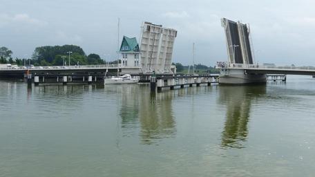 Keywords: bridge kappeln mecklenburg road bridge bascule bridge schlei traffic river water autos germany construction