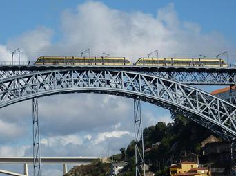 Keywords: bridge metal arch train railway railcar cross porto travel portugal tourism douro