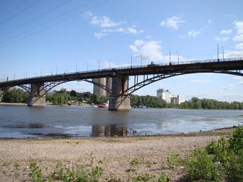 Keywords: bridge river samarka samara russia sky clouds wave beach pebbles