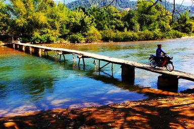 Keywords: bridge river wooden bridge motorbike architecture travel landmark water landscape scenic natural peaceful sunset outdoor summer nature sky view scene tranquil beautiful landscape scenery tourism environment span passage