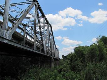 Keywords: bridge steel old metal iron sky blue